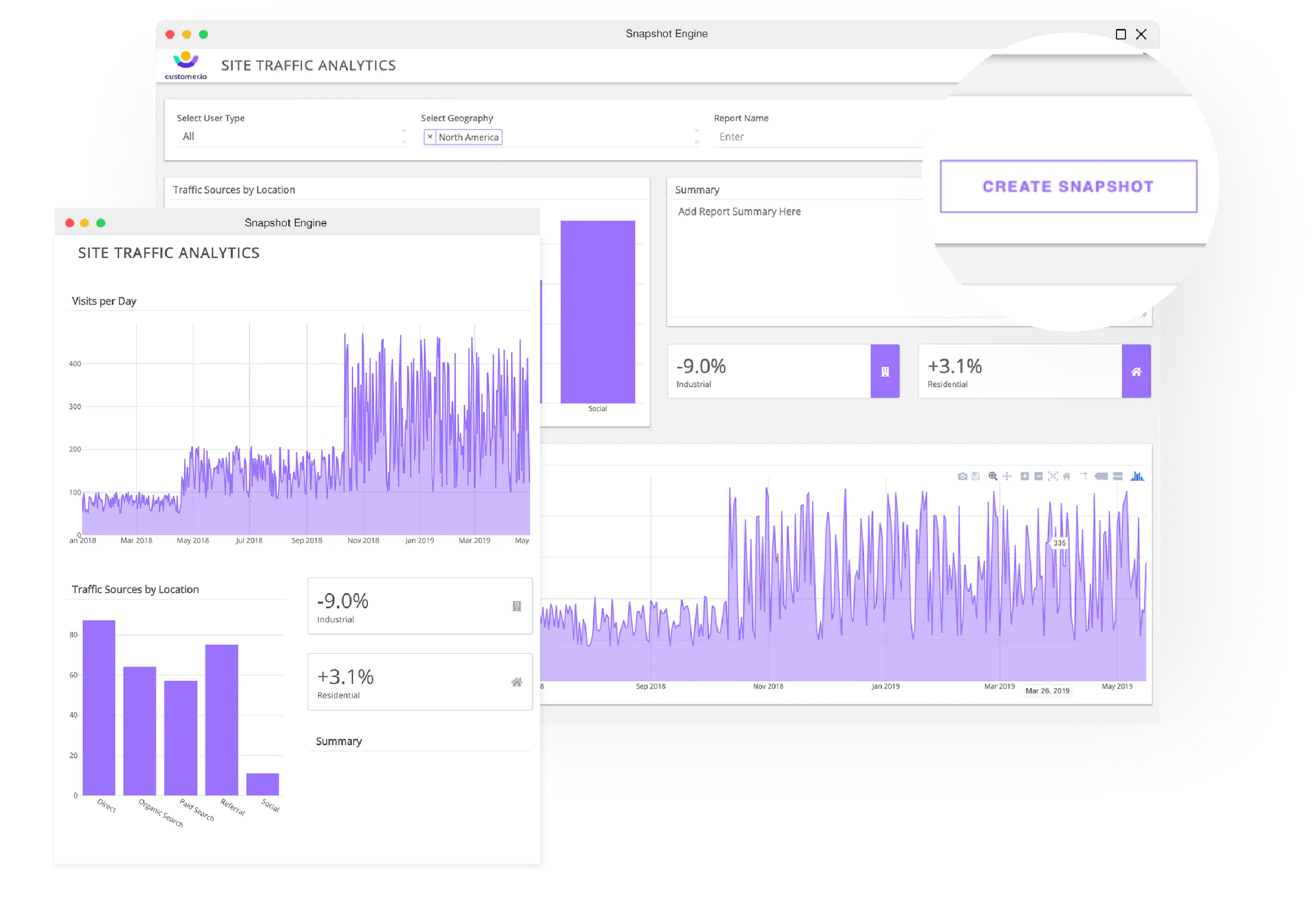 With Snapshot Engine, you can trigger reports programmatically based on timing or events, or enable users to take a snapshot on-demand through the app interface.