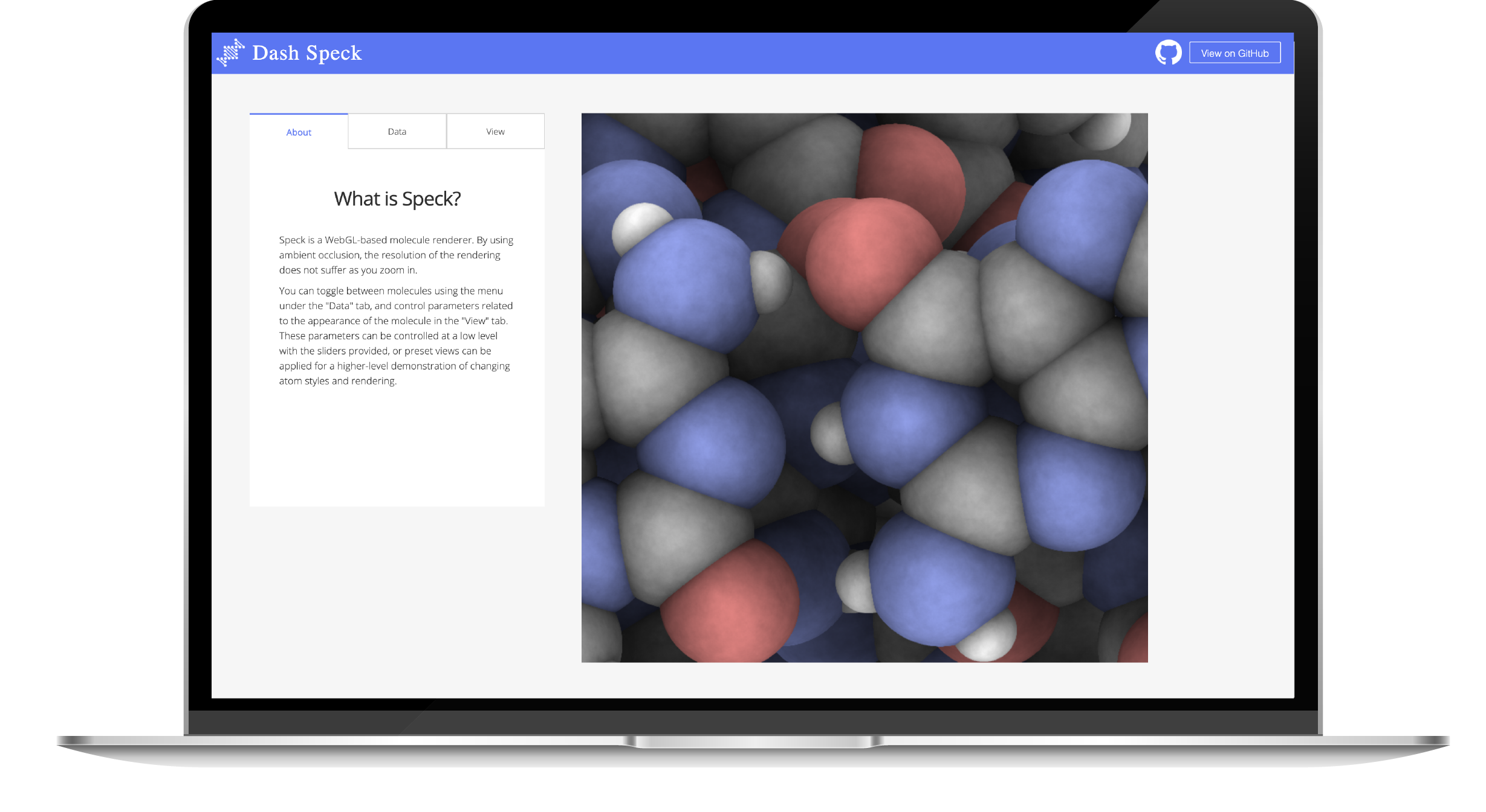 Speck is a WebGL-based molecule renderer. By using ambient occlusion, the resolution of the rendering does not suffer as you zoom in.